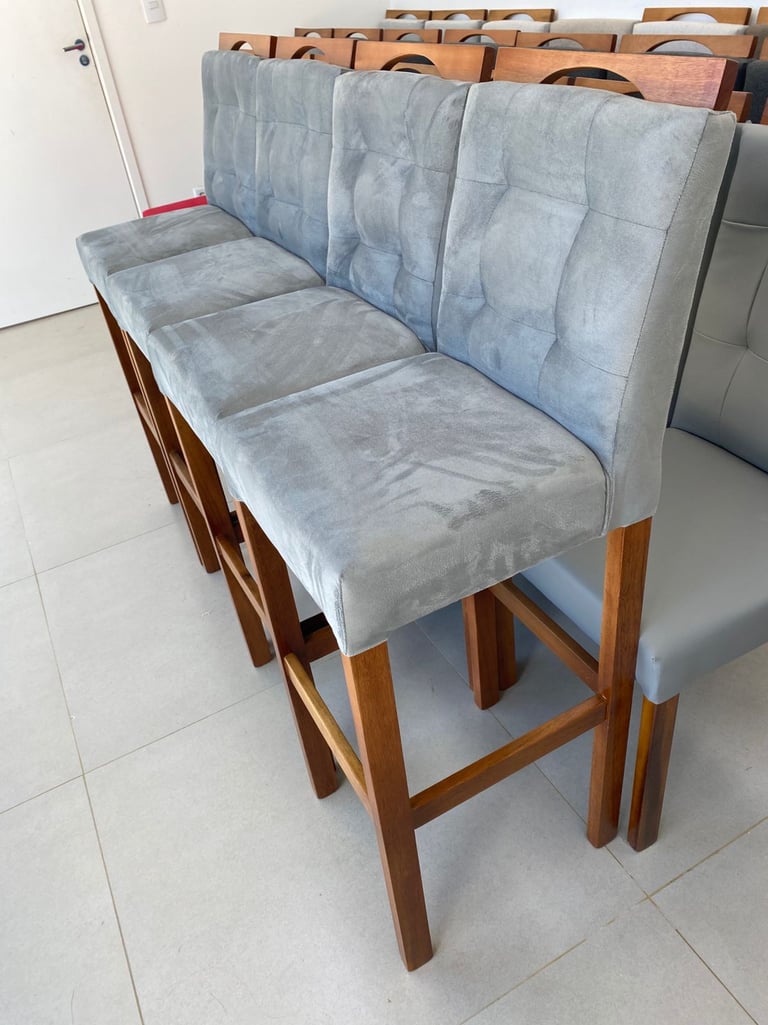 Transforme seus ambientes com o conforto e a elegância das cadeiras e banquetas da RN Cadeiras. Produzidas em madeira maciça, com estofamento de alta qualidade e acabamento impecável, nossas peças combinam design, resistência e sofisticação.